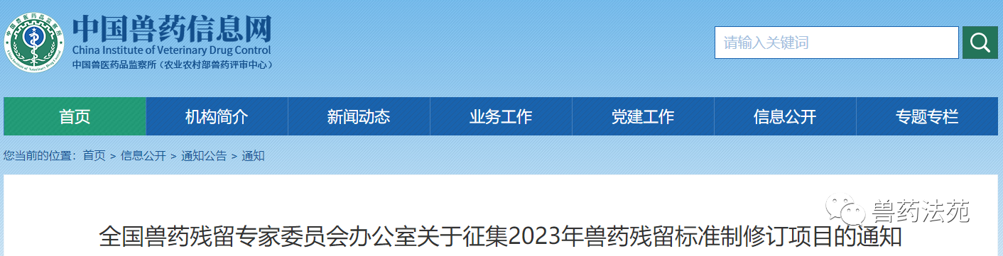 南為切實做好動物性食品中獸藥殘留國家標準立項工作,不斷完善獸藥殘留食品安全國家標準體系,保障動物性食品安全,現公開征集2023年獸藥殘留標準制修訂項目,請各單位立足當前獸藥殘留標準現狀和動物性食品安全監管工作需要,突出問題導向和需求導向,結合已有工作基礎與技術優勢,認真研究提出2023年項目建議。具體要求如下:一、立項范圍和方向(一)獸藥最大殘留限量標準的制定、修訂和試行標準轉正;(二)獸藥殘留檢